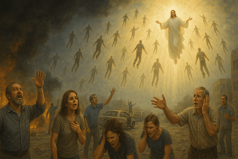 Pierwsza nowela z wymienionej serii Tim’a LaHaye, mająca tytuł Left Behind: A Novel of the Earth’s Last Days (wydana w języku polskim pod niezwykle mylącym tytułem Dzień zagłady), zaczyna się od nieoczekiwanego zniknięcia milionów ludzi na całej ziemi, przy czym wszystkich dzieci. [2]